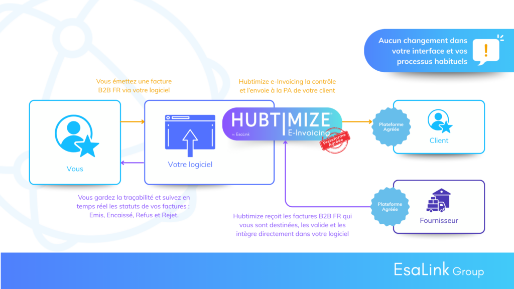 Grâce à notre alliance avec EsaLink, nous intégrons désormais la technologie Hubtimize e-Invoicing directement au sein de nos solutions. Cela permet à nos clients, s’ils le souhaitent, d’accéder immédiatement à un dispositif conforme, fiable et entièrement interopérable avec l’écosystème réglementaire français.